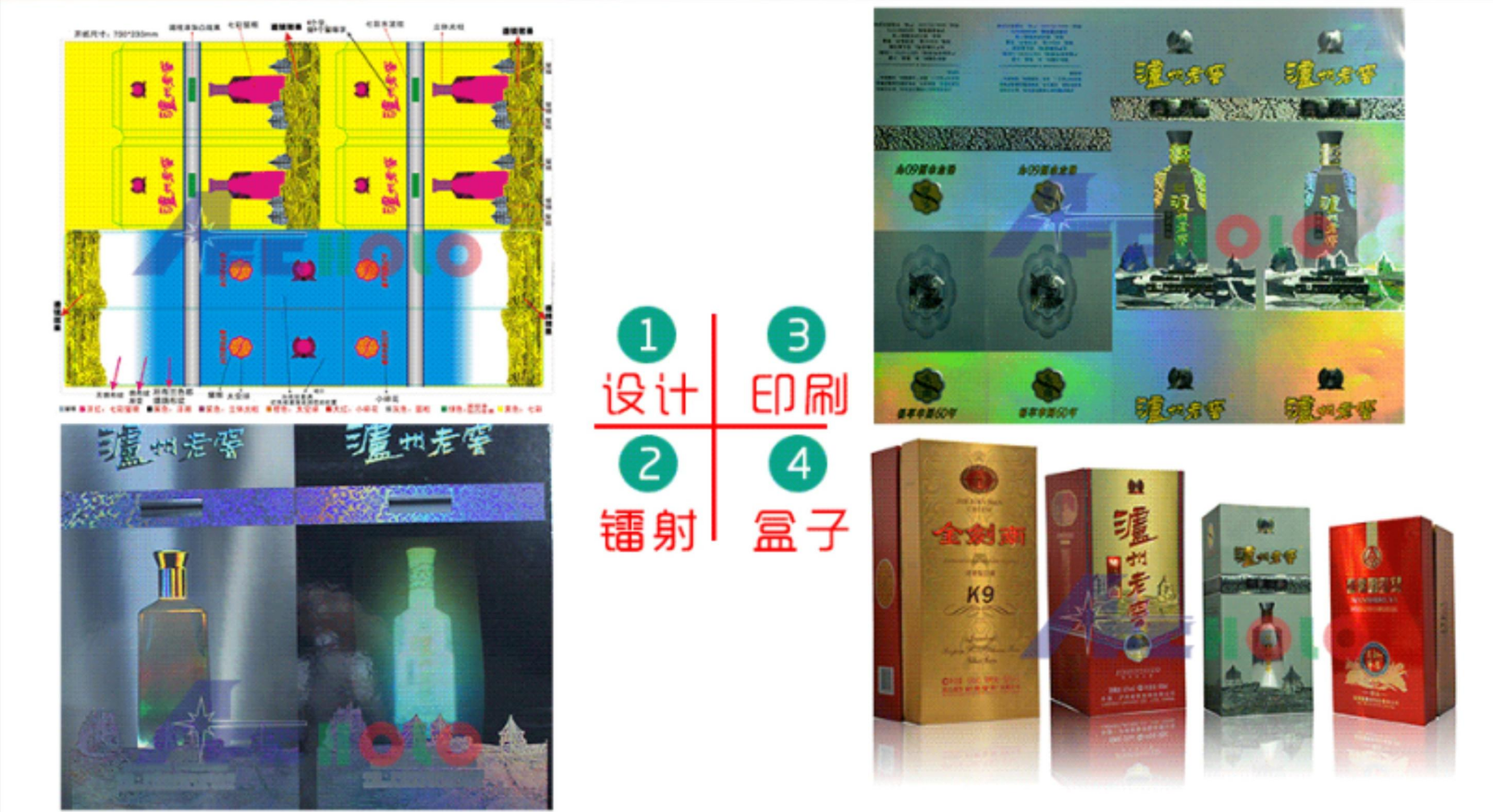 • 全息定位印刷包装材料采用激光防伪技术及猫眼透镜高度结合定位制作,UV定位模压,跟踪定位裁切、UV定位印刷等先进工艺制作、结合各种印刷工艺,使得全息定位印刷包装产品美轮美奂,兼具防伪功效。